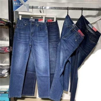 מכנסי ג 'ינס כחול נשטף מכנסי ג' ינס לוגו מותאם אישית רקמה רופפת הקיץ המותניים אמצע רוכסן לטוס מזדמן אנטי-קמטים